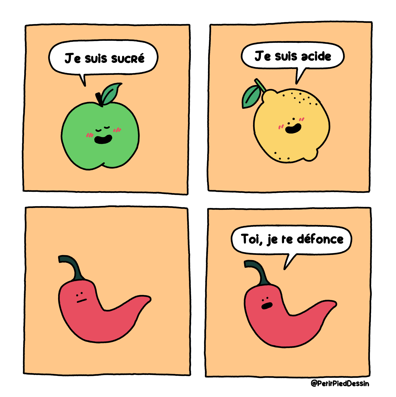 Je suis Petit Pied, un auteur de BD qui fait des petites BD de quelques cases humoristique dans un style minimaliste.
