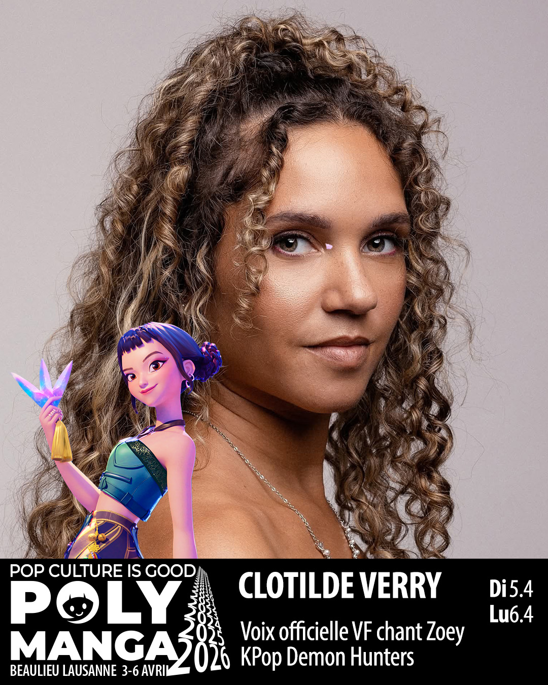 Minikonzert und Konferenz mit den Französichen Stimmen von Kpop Demon Hunters. Nach dem grossen Erfolg in Nantes wird das Mini-Konzert mit den Französiche Sängern von Kpop Demon Hunters am 5. und 6. April bei Polymanga Lausanne stattfinden. Das Konzert wird von Selfie- und Autogrammstunden sowie einer Konferenz begleitet.