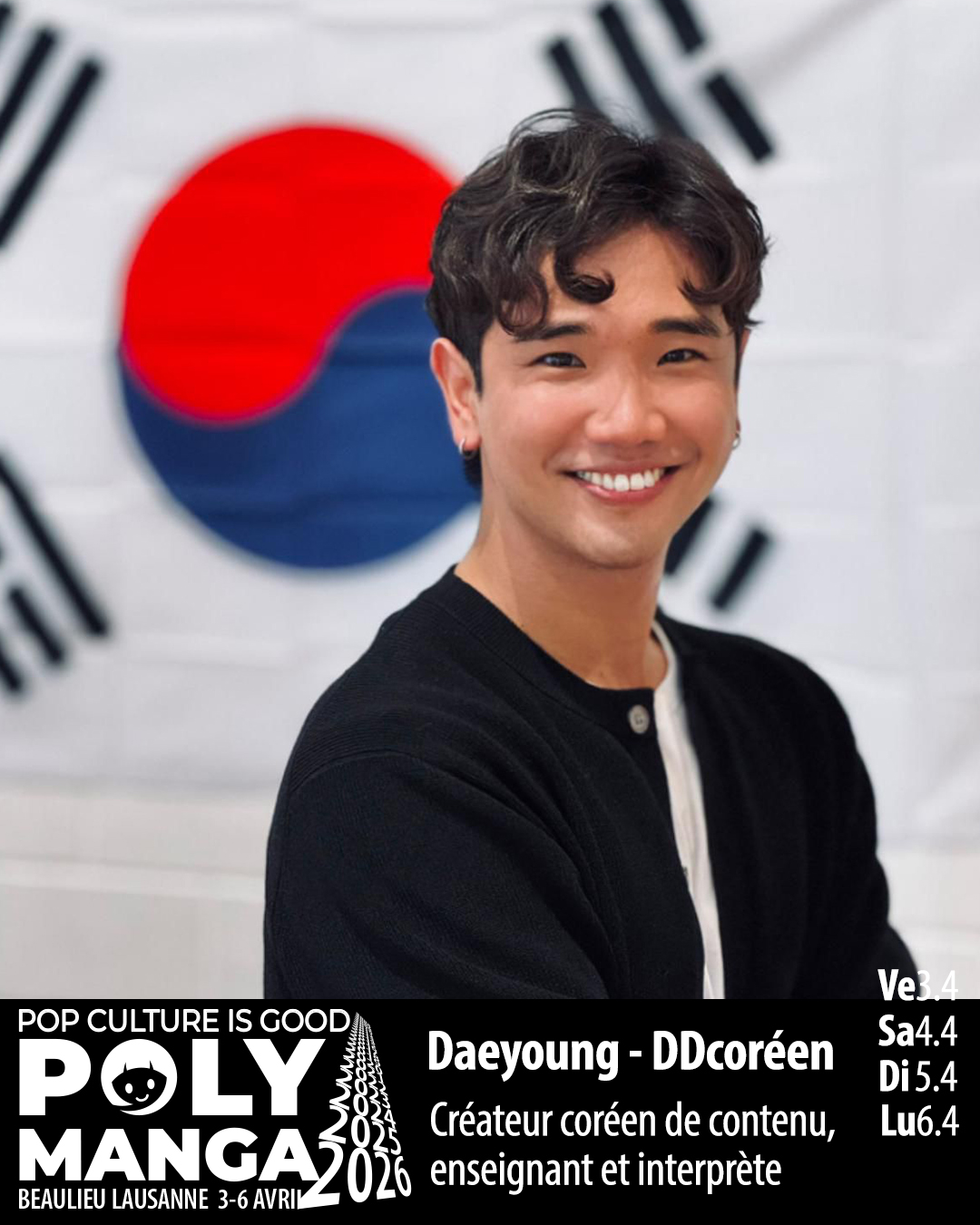 Daeyoung, alias ddcoreen, sera présent à @Polymanga Lausanne du 3 au 6 avril pour une conférence, des dédicaces et des sessions de traduction lors des concerts des invités coréens.
