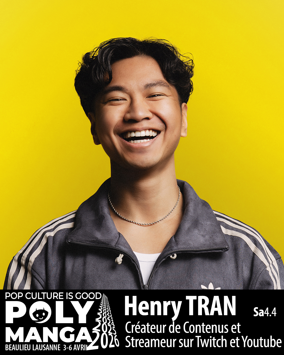Henry Tran est de retour à Polymanga Samedi 4 avril pour une projection, une conférence et des dédicaces. Henry est un créateur de contenus connu à ses débuts sur la chaîne « Le Rire Jaune » et qui développe aujourd’hui des projets ambitieux mêlant humour, documentaires immersifs, storytelling et formats en direct suivis par plusieurs millions de personnes.
